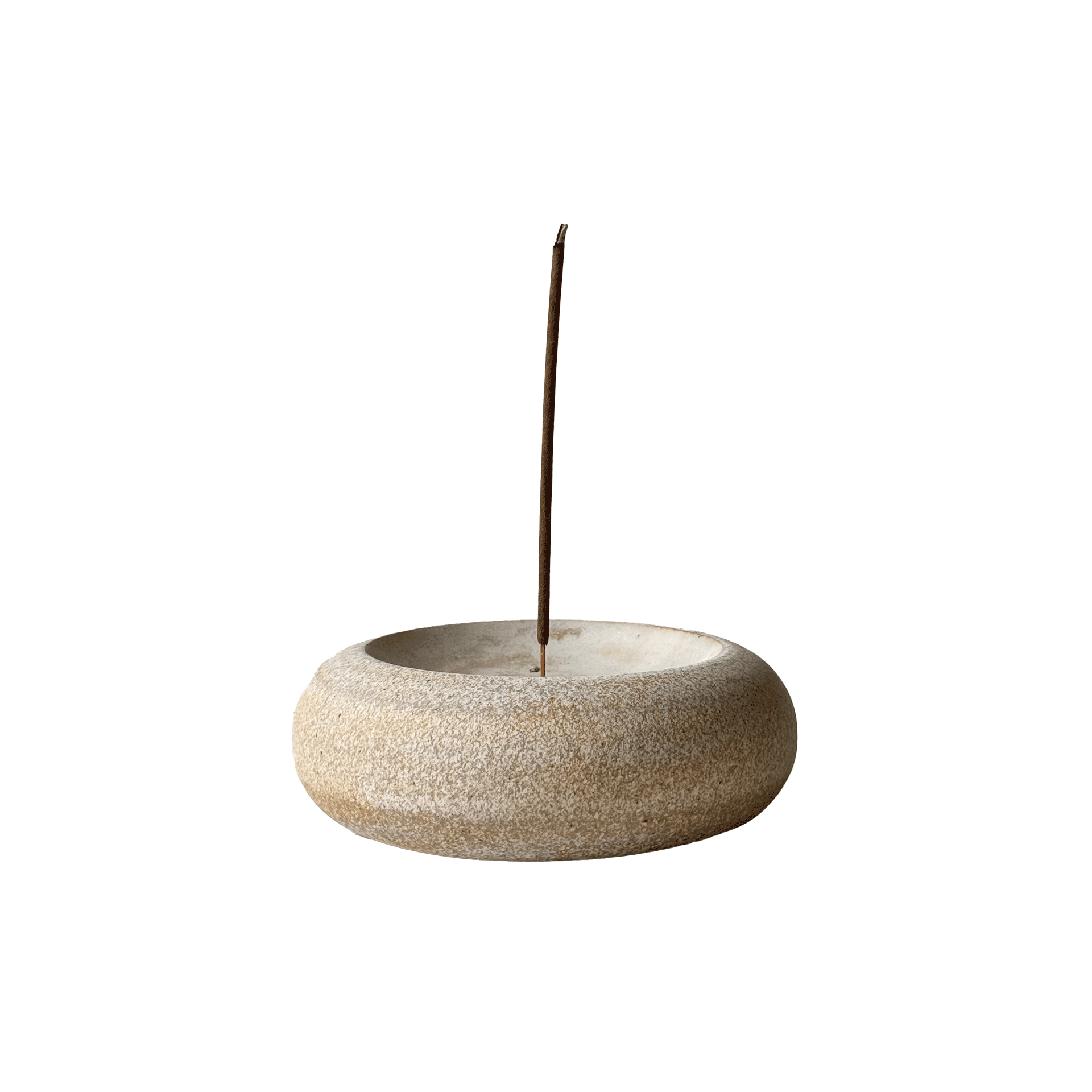 Designed with a traditional stick incense holder as well as a bowl for sage or palo santo. Wheel-thrown stoneware with glazed interior and raw ceramic exterior. Quartzite clay body ranges from creamy white to light gray. .