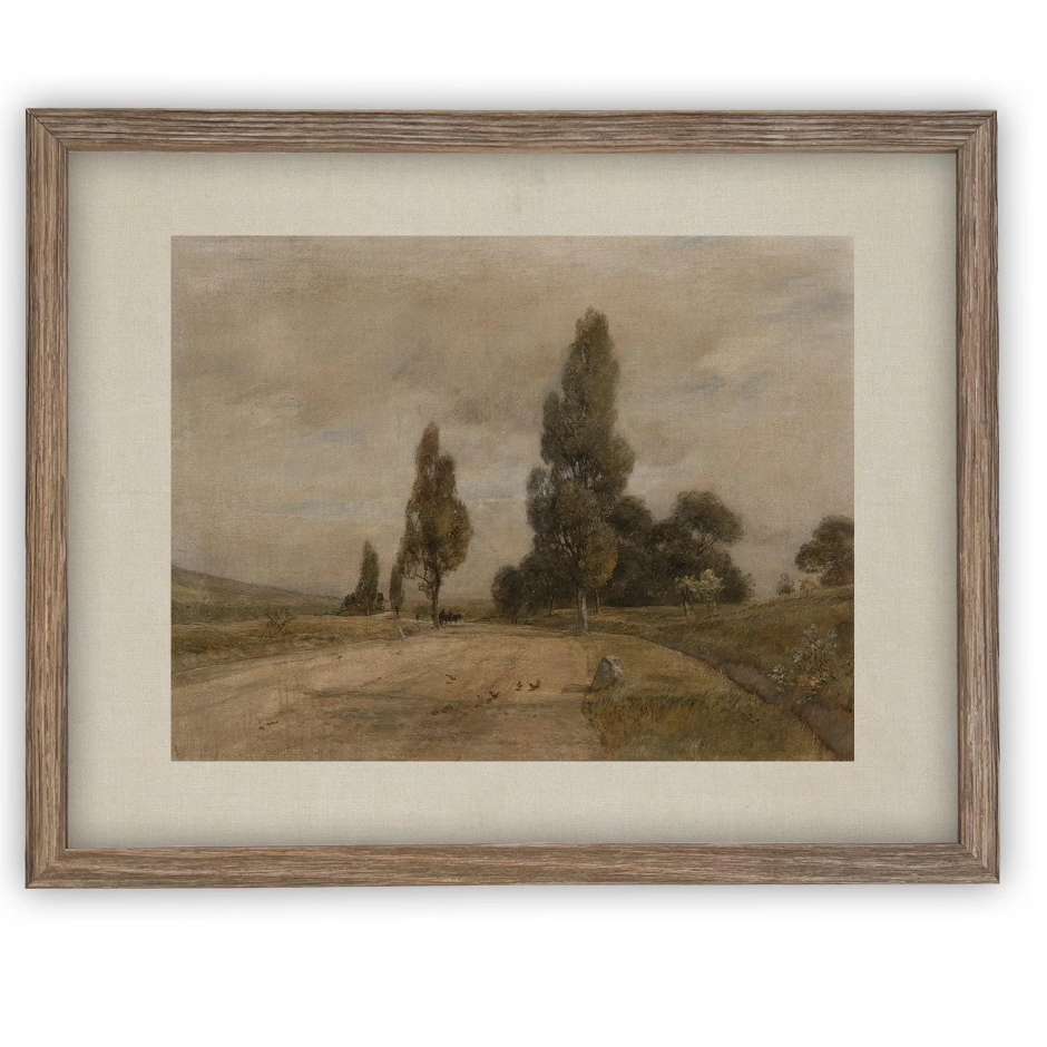 Elevate your space with the Countryside Landscape Framed Canvas Art 12" x 16” vintage reproduction art, masterfully printed on premium canvas. Each piece captures the charm and character of the original artwork, including its authentic patina, intricate grain, subtle cracking, and natural signs of age. These imperfections are not flaws but features, enhancing the beauty and realism of the painting, offering a timeless aesthetic that brings warmth and sophistication to any setting.