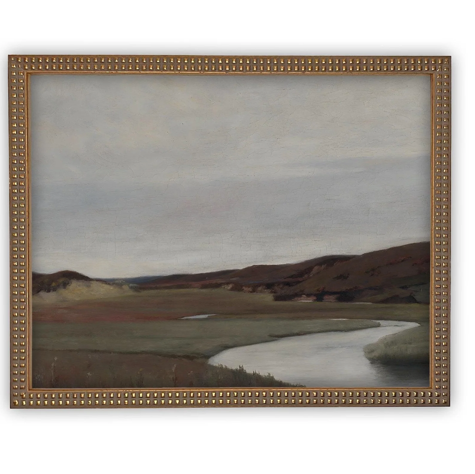 Elevate your space with the River Landscape Framed Canvas Art 12" x 16” vintage reproduction art, masterfully printed on premium canvas. Each piece captures the charm and character of the original artwork, including its authentic patina, intricate grain, subtle cracking, and natural signs of age. These imperfections are not flaws but features, enhancing the beauty and realism of the painting, offering a timeless aesthetic that brings warmth and sophistication to any setting.