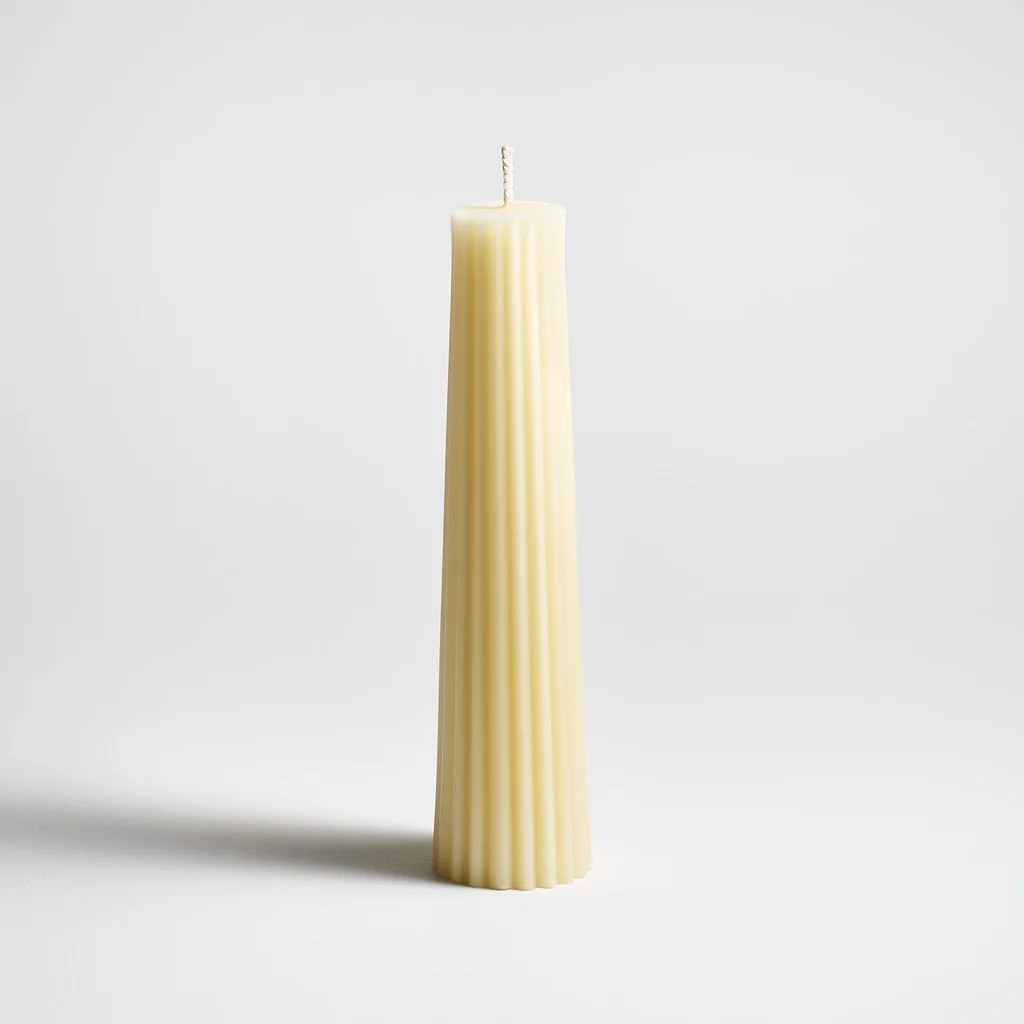 Hand-poured beeswax pillar candle standing 9 inches tall. Made from 100% pure North American beeswax and individually finished in New York State. The fluted design works beautifully as a standalone piece or grouped with others. Sold individually and boxed.