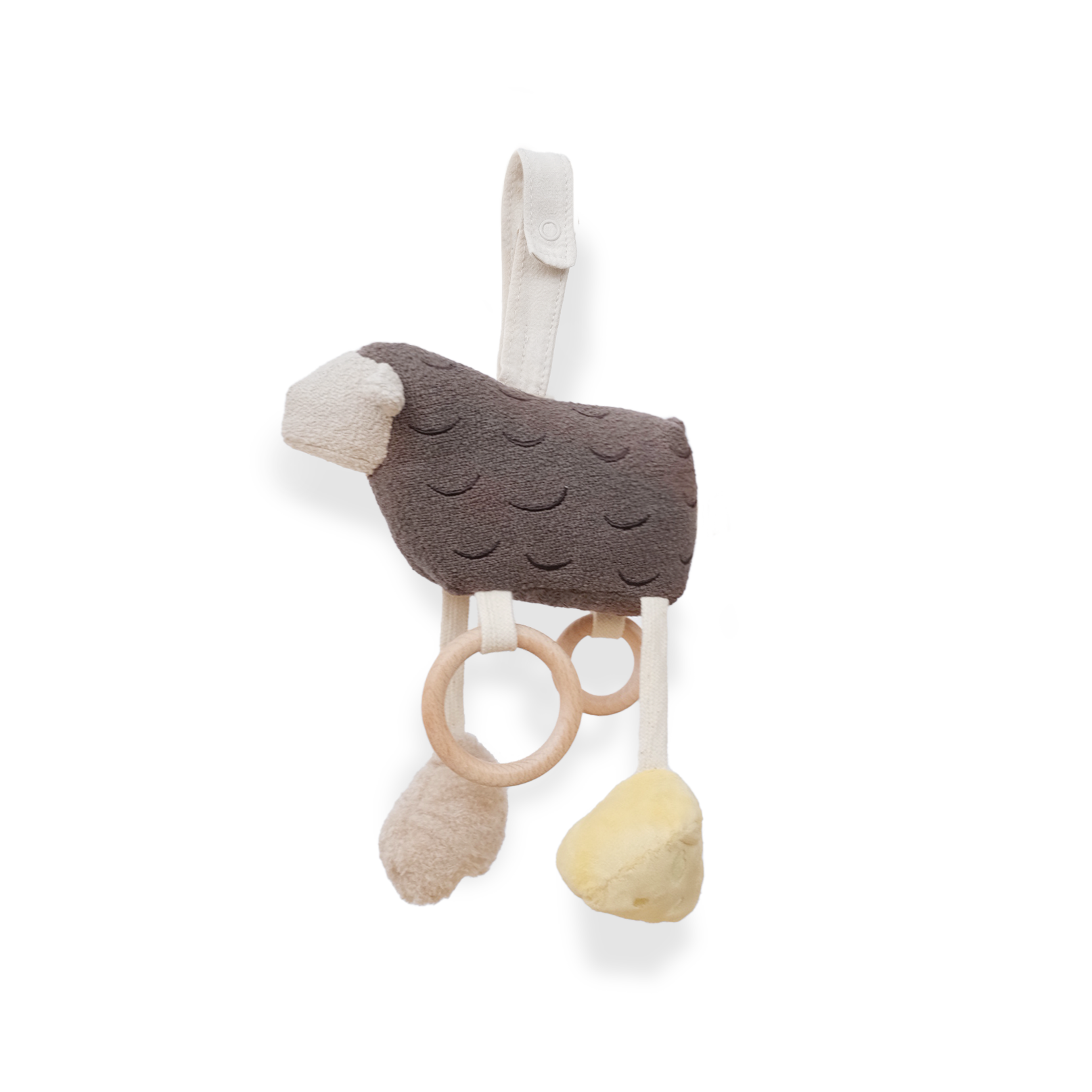 The baa baa Hanging Stroller Sheep Toy is a delightful sheep mobile that entertains little ones with various rattling sounds and a squeaky mitten! Its snap strap makes it a breeze to attach to strollers, baby gyms, or car seat handles. Plus, wooden rings are perfect for tiny hands to grab and explore.