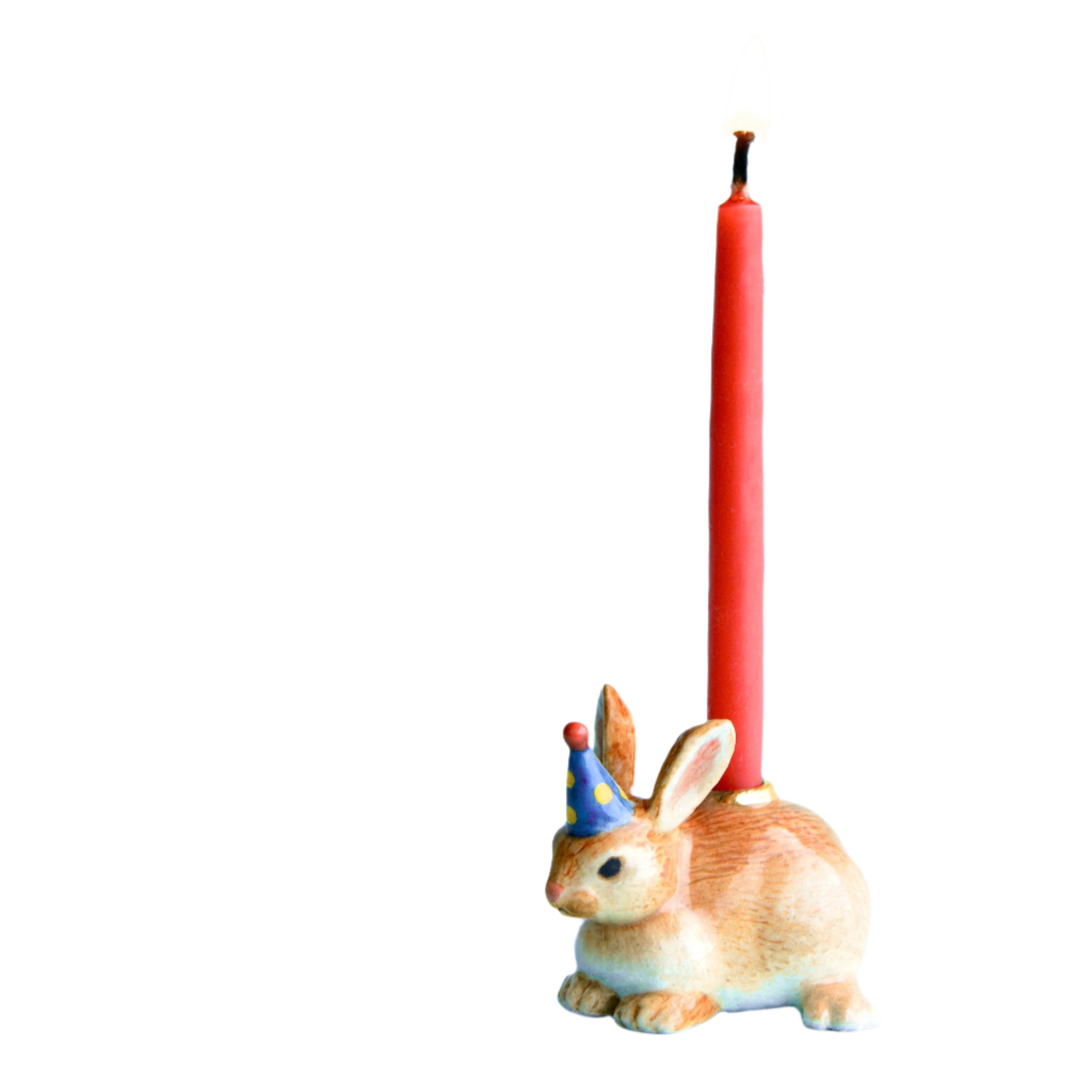Hand-painted porcelain cake topper featuring a whimsical rabbit in a party hat. Celebrates the Year of the Rabbit with heirloom-quality craftsmanship. Perfect for birthdays, anniversaries, and special occasions. A meaningful keepsake that captures the rabbit's gentle and lucky nature.