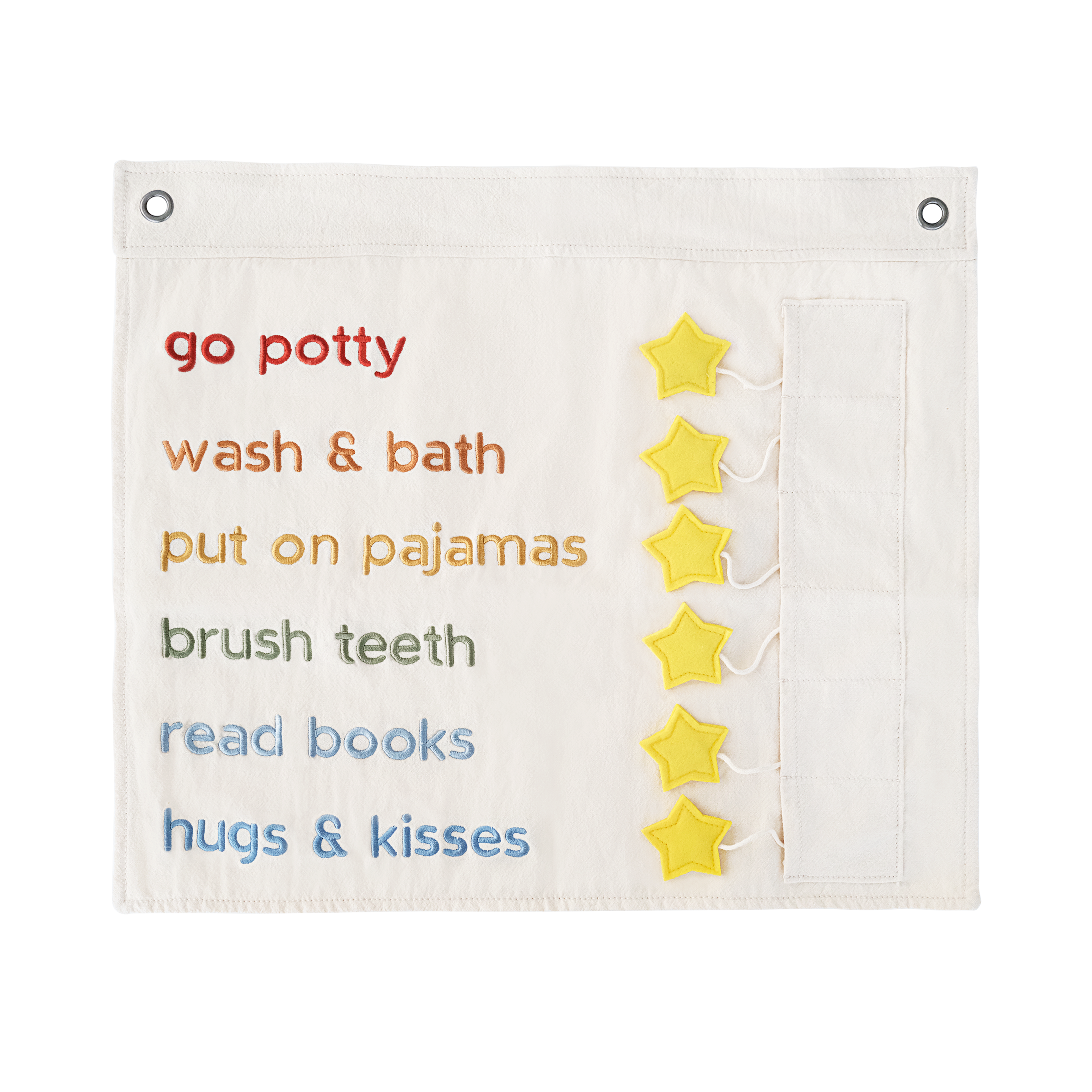 Help your little one breeze through bedtime with this playful and practical checklist Bedtime To-Do Banner! Designed with Montessori principles in mind, this banner turns routines into a fun, hands-on activity. Your toddler can pull the colorful star from the pockets and stick it on each task as they complete it—brushing teeth, putting on PJs, and more!