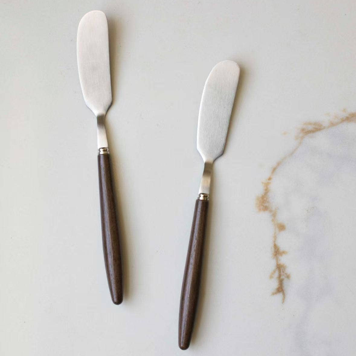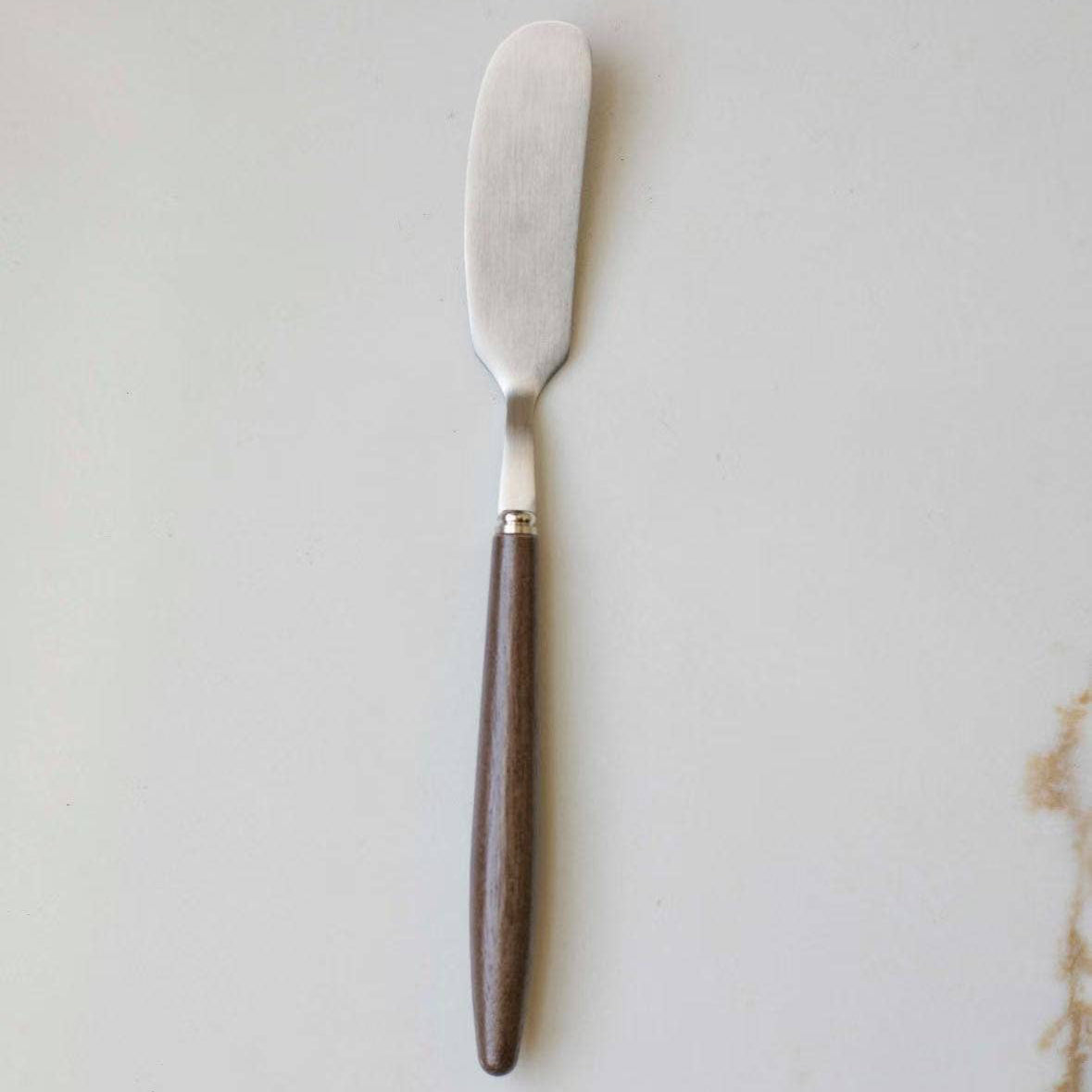 The butter and jam spreader has a sleek, flat stainless - steel blade, which is excellent for evenly spreading butter, jam, or other spreads. Its wooden handle ensures a firm and comfortable hold.
