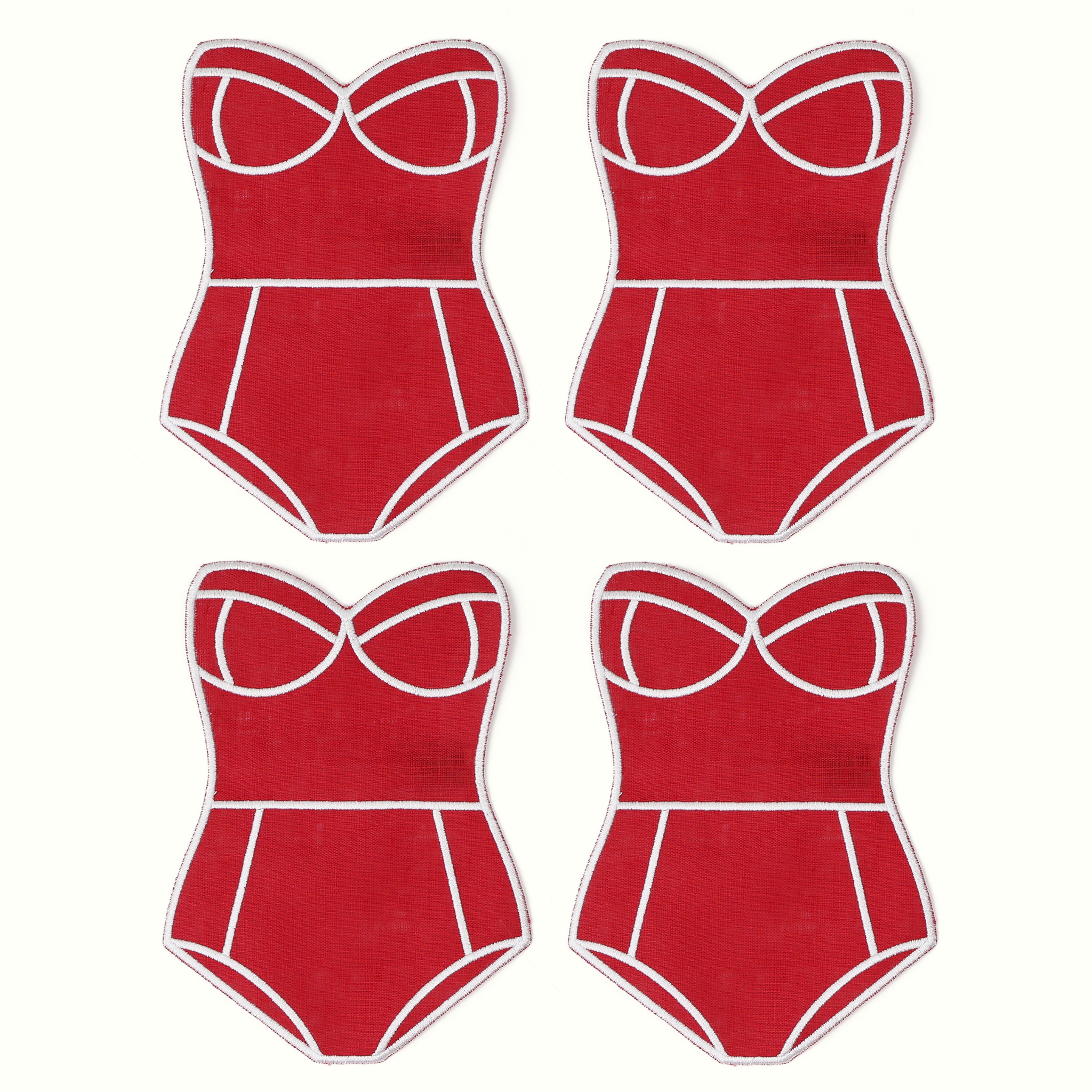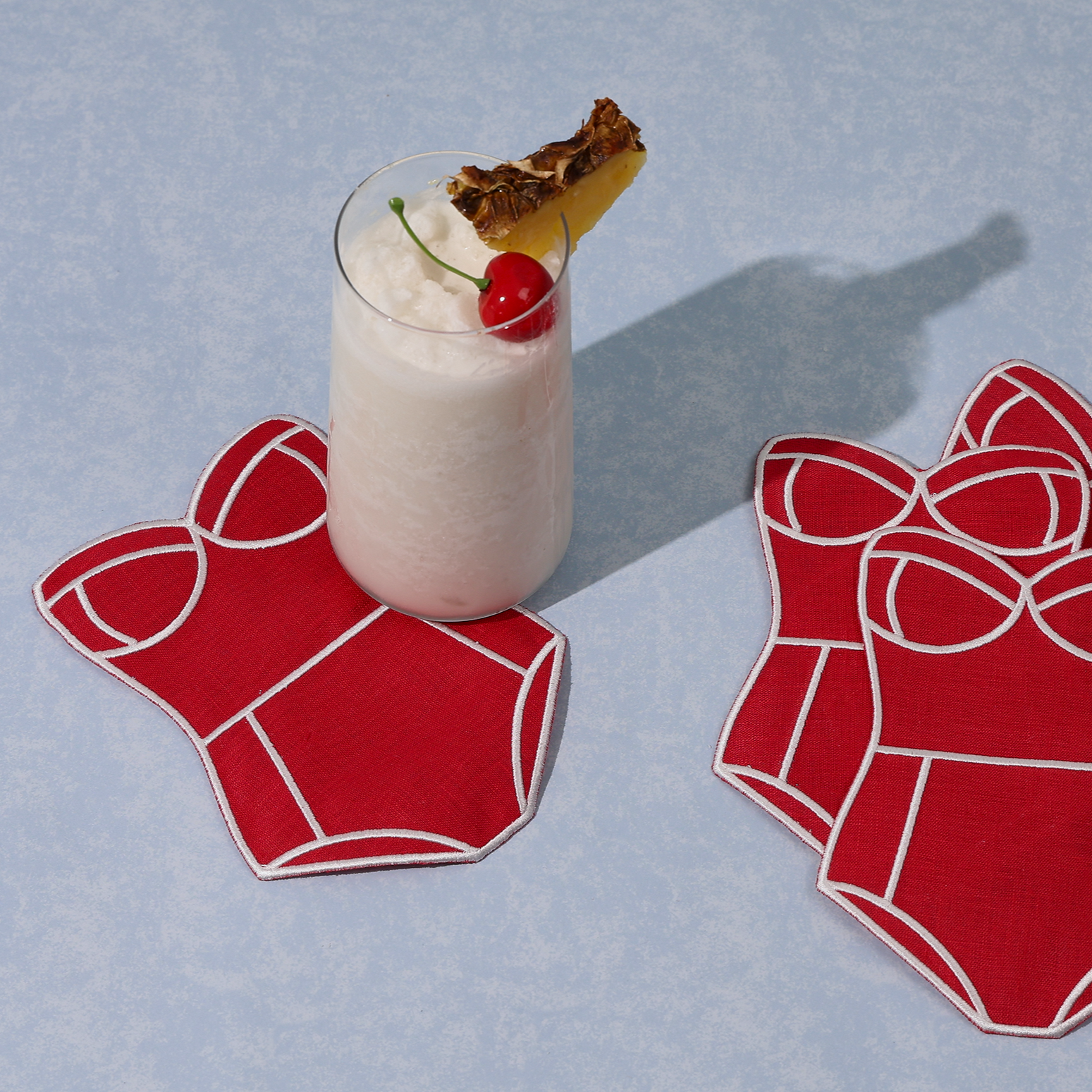 Add a touch of poolside glamour to your next gathering with these chic, swimsuit-shaped cocktail napkins. Crafted from 100% linen in a vibrant, sun-kissed red, each napkin is a playful nod to vintage resort style—equal parts charm and sophistication. Whether you’re serving rosé by the pool or cocktails on the patio, these napkins are dressed for the occasion. Sold as a set of 4.